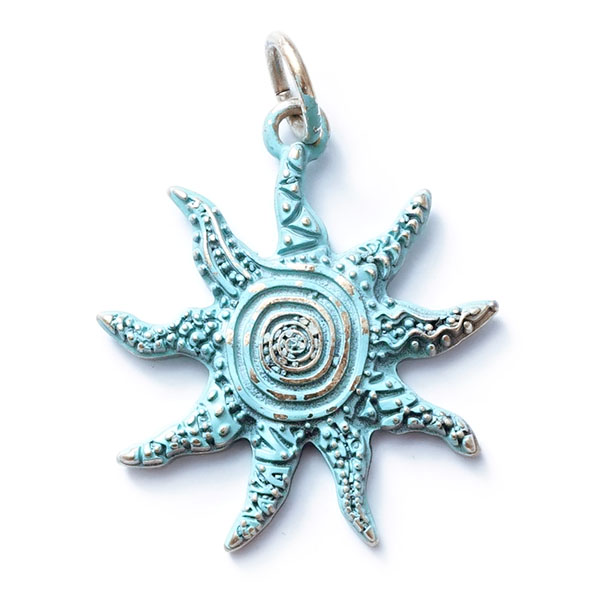Die Sonne ist Licht, Wärme und Leben. Das Sonnen Amulett ist reliefartig gearbeitet. Aus den Mustern der Sonnenstrahlen bildet sich eine kunstvolle Spirale.