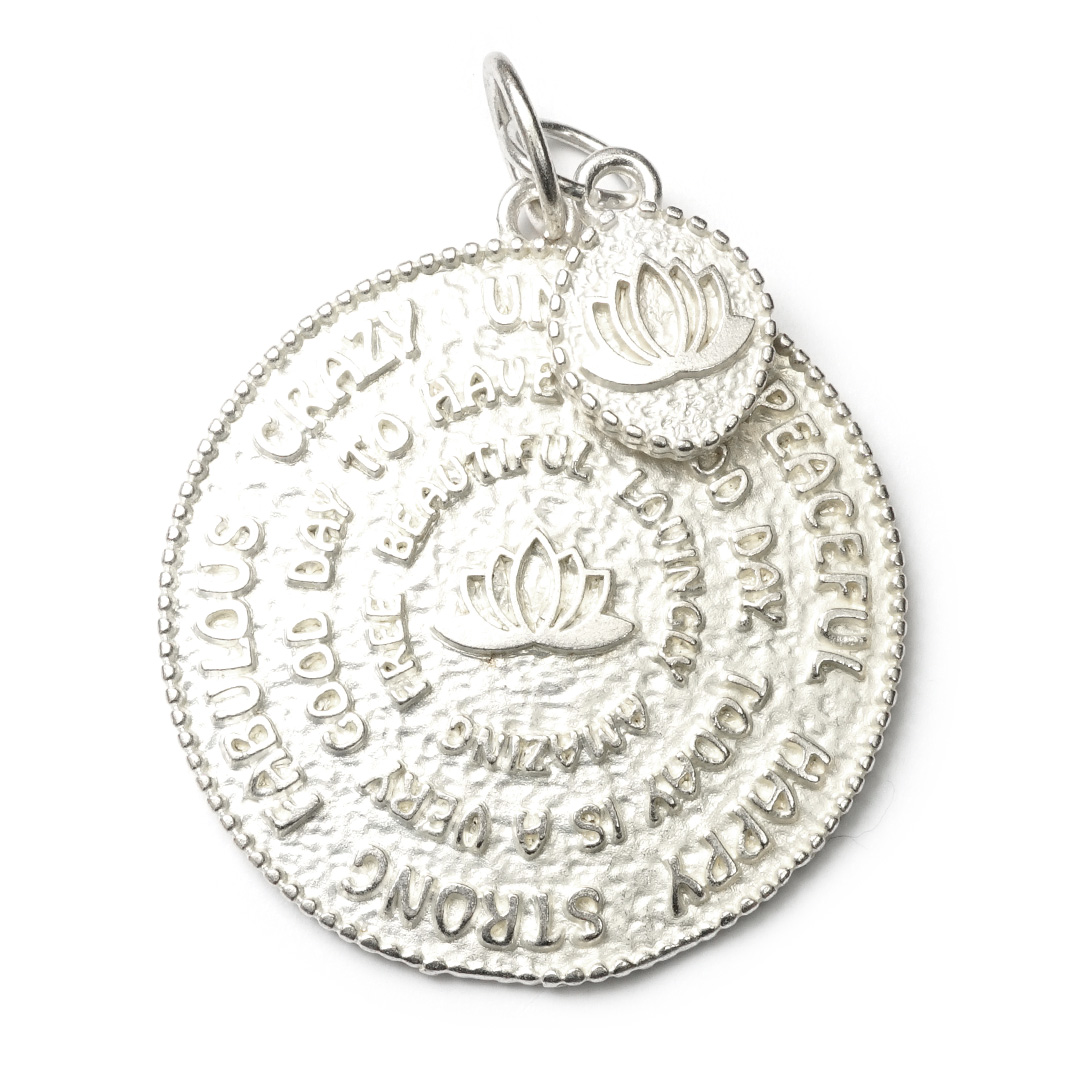 Die Lotusblume ist nicht nur eine faszinierende Blume oder eine bekannte Yoga-Pose, sondern sie verkörpert auch die Magie des Lebens. In unserem exklusiven Design haben wir die symbolische Kraft eingefangen. Die Zauberwörter dazu sind in erhabenen Lettern kreisförmig um die Lotusblume geprägt.