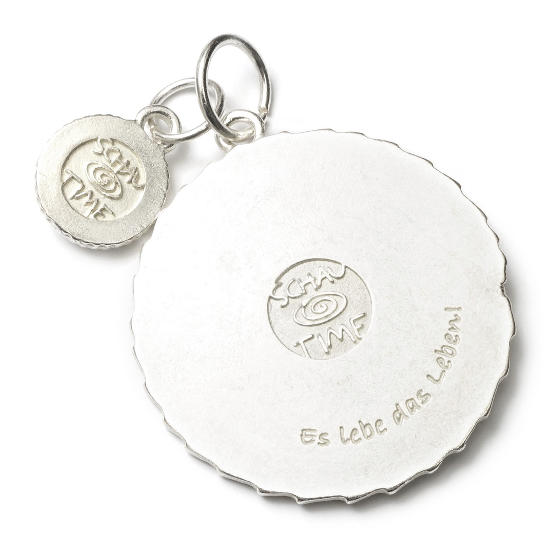 Die Gravur auf der Rückseite verstärkt die poetische Botschaft dieses Schmuckstücks: "Es lebe das Leben!"