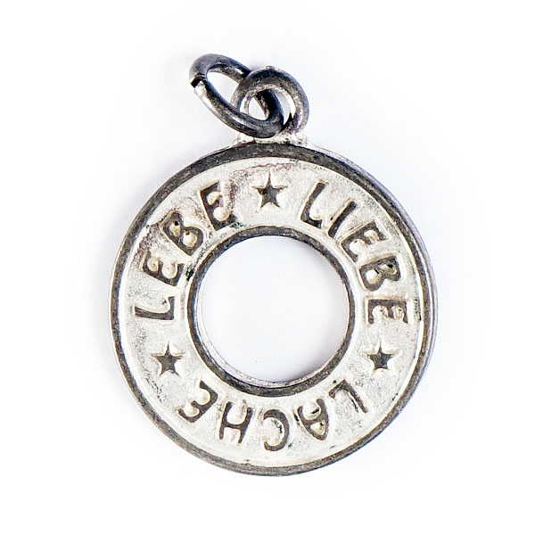 Eindrucksvoller massiver Ring mit erhabenen Lettern: * LEBE * LIEBE * LACHE.