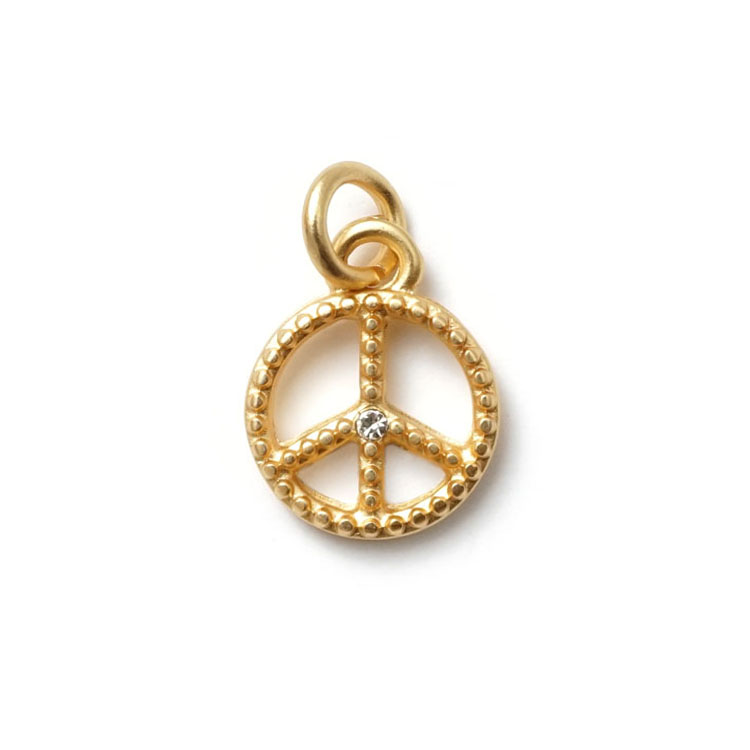 Das begehrte Peace Zeichen ist hier in bezauberndem Look als kunstvoller Schmuckanhänger verarbeitet. In der Mitte ist ein strahlendes Strass Steinchen eingesetzt.