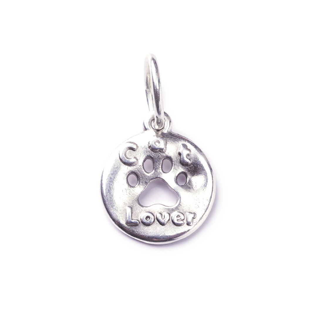 Entdecke die liebevolle Detailarbeit des Amuletts Katzenzauber. Die kleine Pfote und der Schriftzug "CAT Lover" sind filigran in die versilberte Scheibe eingearbeitet. Ein zartes Schmuckstück, das deine Liebe auf subtile Weise zum Ausdruck bringt.
