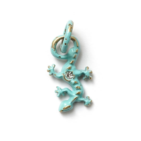 Kunstvoller Gecko als Amulett S, verziert mit einem strahlenden Strass Steinchen.