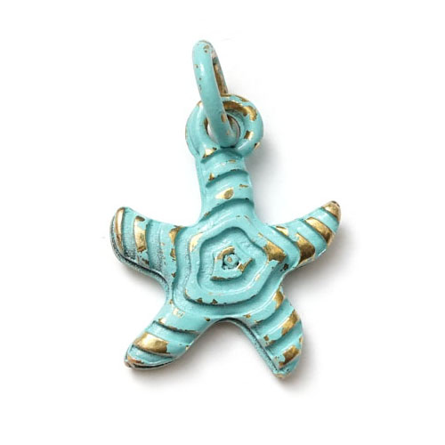 Wundervolles Objekt Seestern mit wellenartig vertieften Linien im VintageDesign Gold-Türkis .