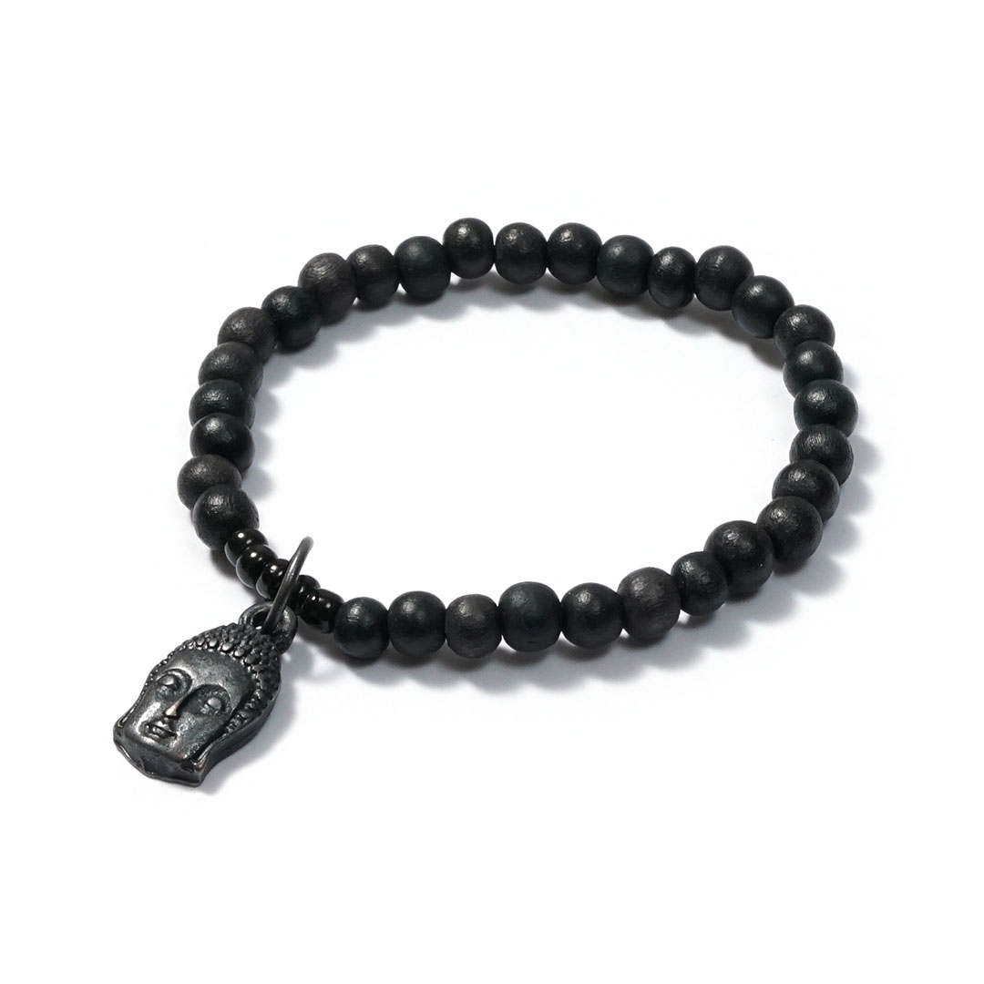 Stilvolles, seidenglänzendes, schwarzes Armband mit handgeschliffenen, vegetabil gefärbten Perlen aus Akazienholz. Als Hingucker ist das Amulett Buddha im Design BlackBeauty eingearbeitet.