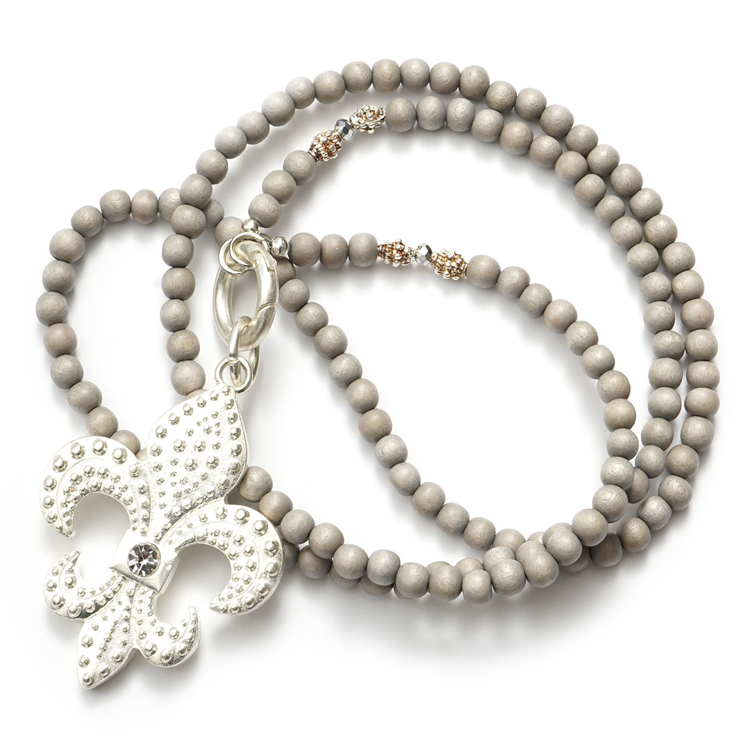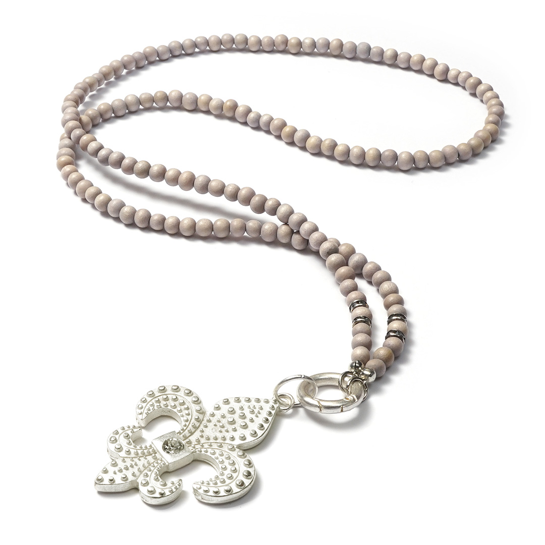 Stilvolle lange Wechselkette mit ca. 130 steingrauen Perlen aus Akazienholz. Silberne Beads zwischen den handgeschliffenen und vegetabil gefärbten Perlen vollenden das exklusive SilverShiny Design.