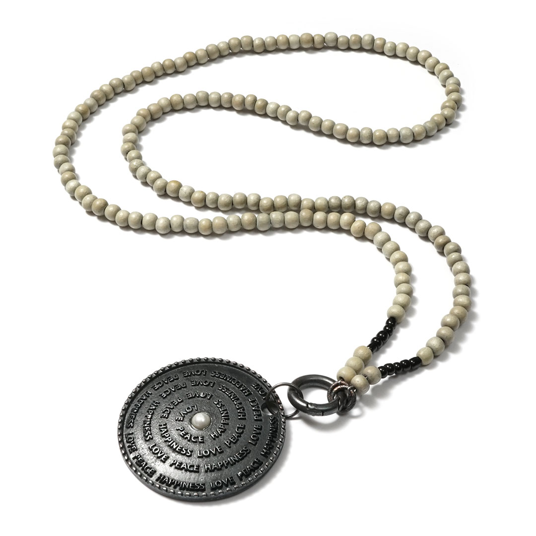 Harmonie und Design für die Ewigkeit: coole Scheibe im VintageDesign BlackBeauty mit spiralenförmiger Inschrift "LOVE PEACE HAPPINESS".