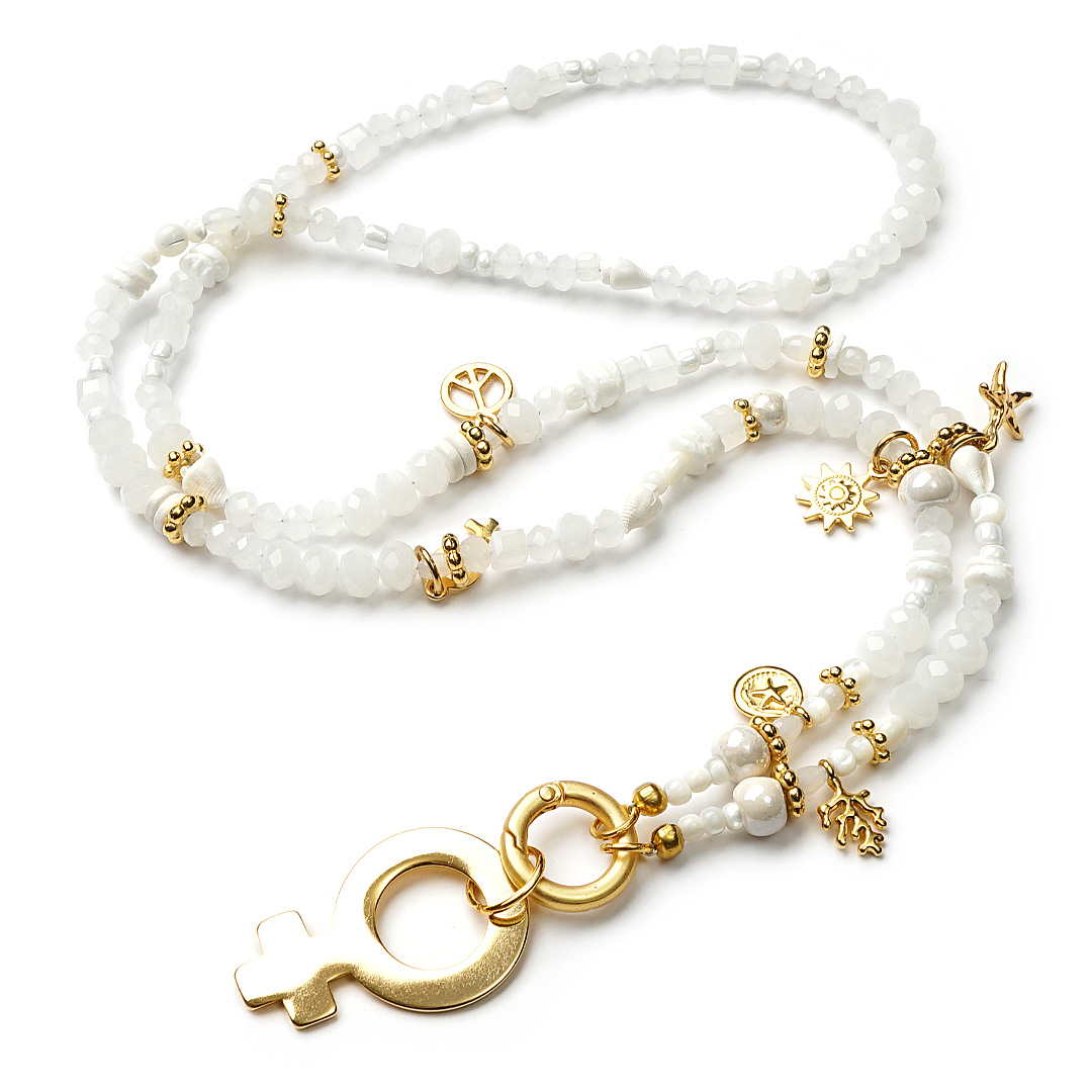 Entdecke unsere zauberhafte Beach Kollektion, die eine faszinierende Komposition aus Süßwasserperlen, mattierten Glasschliffperlen und kreativen MuschelBeads präsentiert. Veredelt werden diese Schmuckstücke durch wundervolle vergoldete DesignBeads im angesagten Look von Begging Chains.