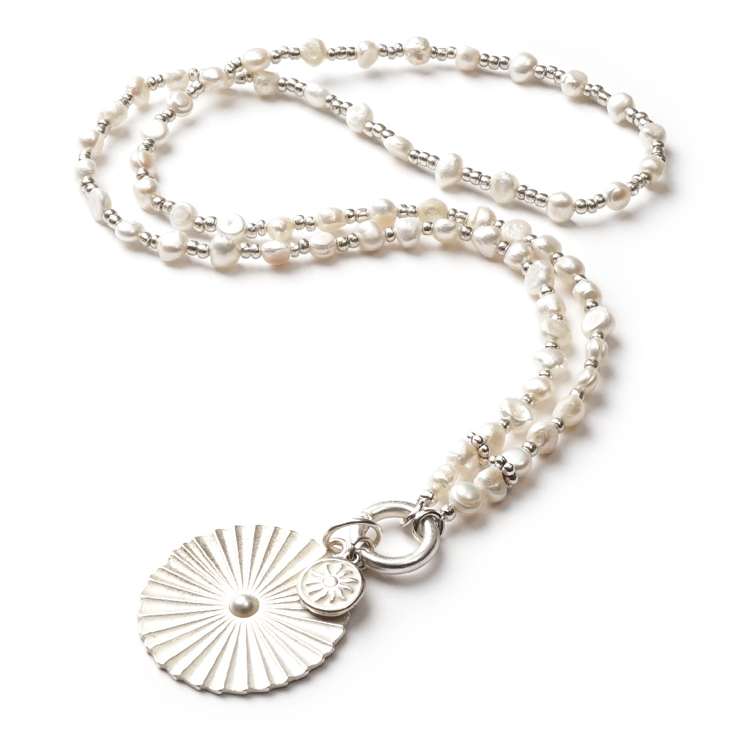 Fidschi 88 SilverShiny, lange Perlen Wechselkette