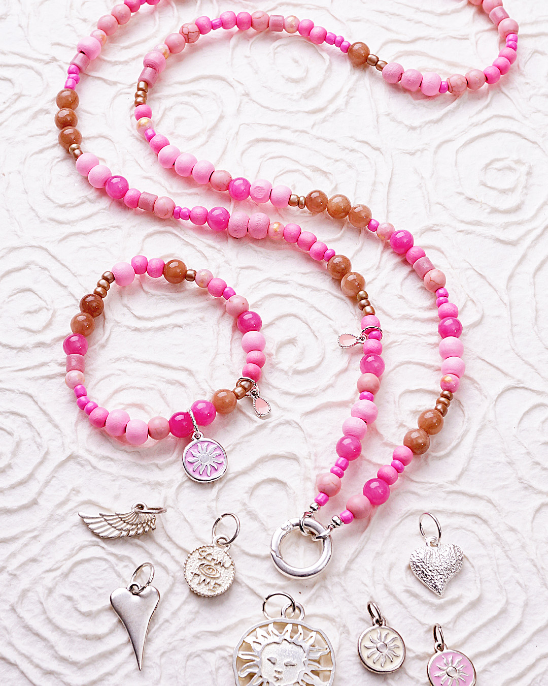 Sanft, verspielt und voller positiver Energie – die Wechselkette Pink Beach ist wie eine blühende Wiese im ersten Morgenlicht. Diese Komposition zeigt, wie kraftvoll und zugleich zart die Farbe Rosa wirken kann.