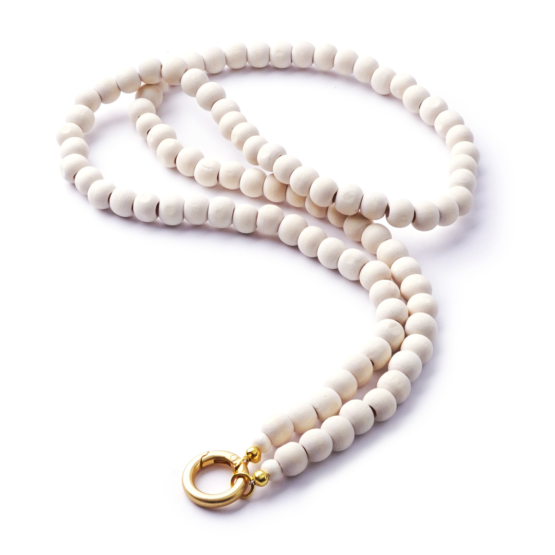 Inspiriert von der lässigen Eleganz der Mittelmeerstrände, präsentieren wir dir die EsTrenc XXL Wechselkette mit beeindruckenden 10 mm großen Perlen aus nachhaltigem Akazienholz. Ihre samtig-matte Oberfläche verleiht ihr dabei einen besonders coolen und modernen Touch.