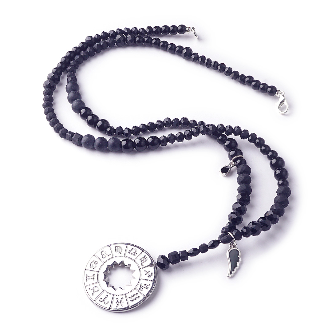 Der absolute Blickfang ist das Amulett „Zodiak“, ein Schmuckstück, das die Geheimnisse des Universums in sich trägt. Die Scheibe, kunstvoll geprägt mit den 12 Tierkreiszeichen, ist ein Fenster zu den Sternen.