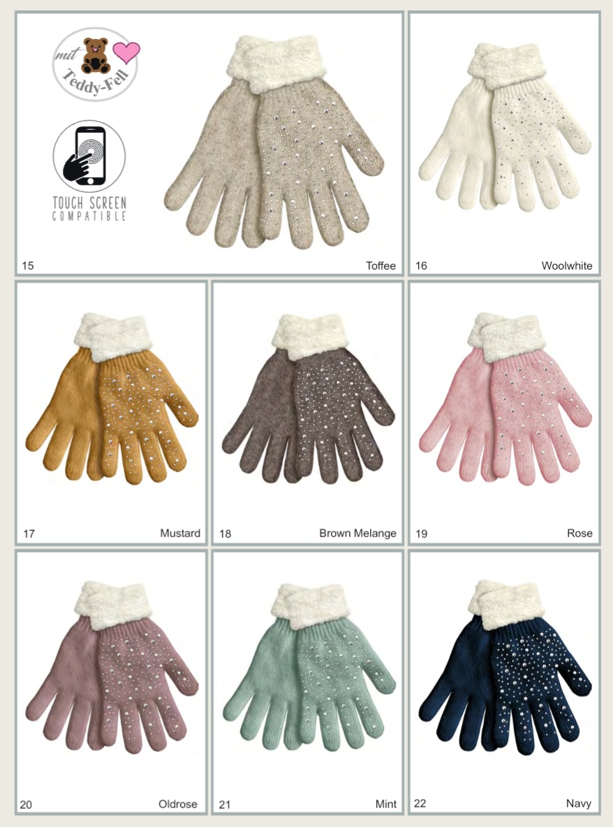 Funkelige Hingucker: Unsere Teddy-Handschuhe mit Funkelsteinchen sind nicht nur kuschelig warm, sondern auch ein echter Blickfang. Das elastische Rippbündchen sorgt für einen perfekten Sitz.